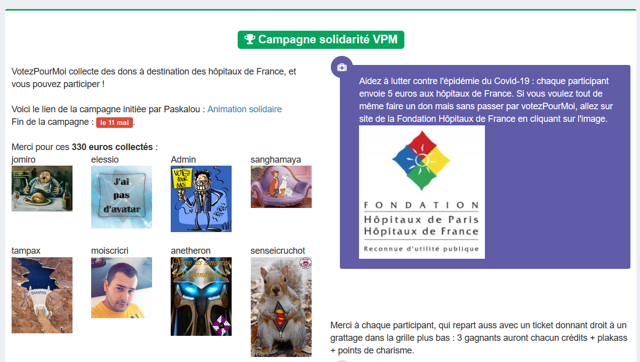 L’animation « Animation Solidaire » (c’est son nom) est lancée dans la foulée, et permet à chacun d’acheter 30 crédits pour 8 euros, dont 5 qui seront reversés à la fondation des Hôpitaux de France.