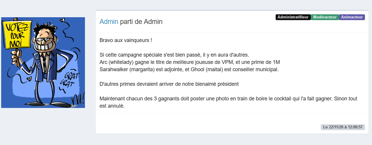 Dommage que ça parle pas des Sauveurs de VPM, pour lesquels bananus avait donné 2 millions mais auxquels seuls 5 joueurs ont vraiment participé^^